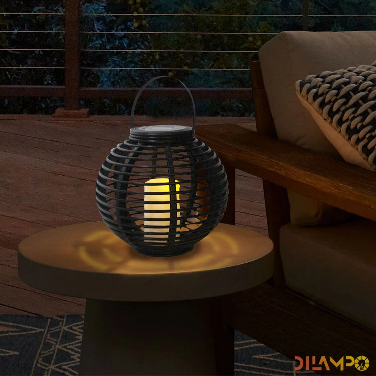 De BANDOS PE-rotan lamp op solar energie heeft en klassieke en toch ook modieuze uitstraling. Door het gebruik van PE-rotan is de duurzaamheid gewaarborgd. Je kan deze lamp neerzetten of ophangen door middel van de ring aan de bovenkant. De BANDOS zal schitteren in en om uw huis, op festivals, in restaurants of op elke plek waar een warme sfeer gecreëerd moet worden.